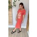 Dress Midi Manga Folha Terracota