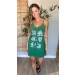 Vestido Curto Alça Folhas Verde Bandeira