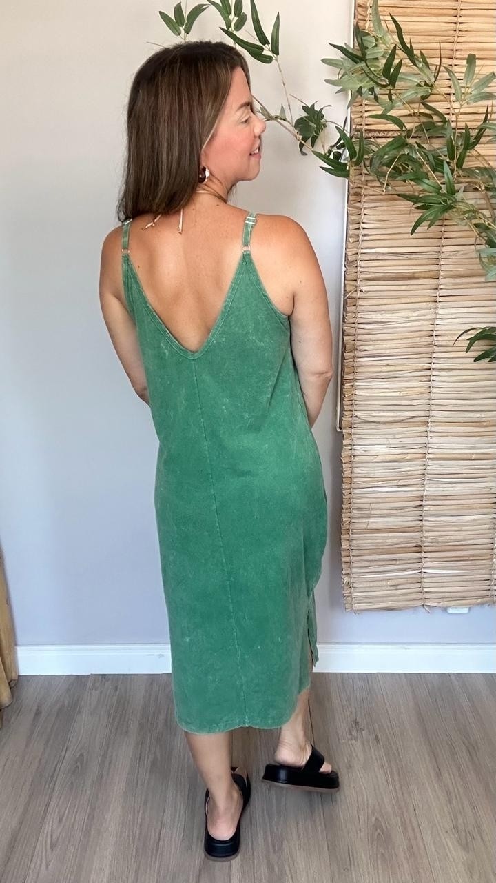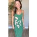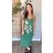 Vestido Midi Alça Graveto De Folhas Verde Bandeira