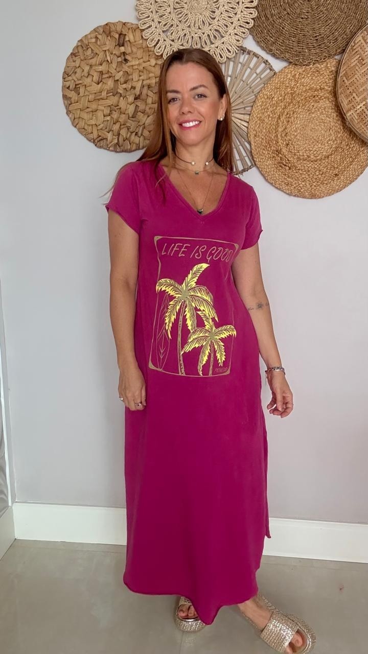 Código: 201-vestido-gola-v-life-is-good-fucsia